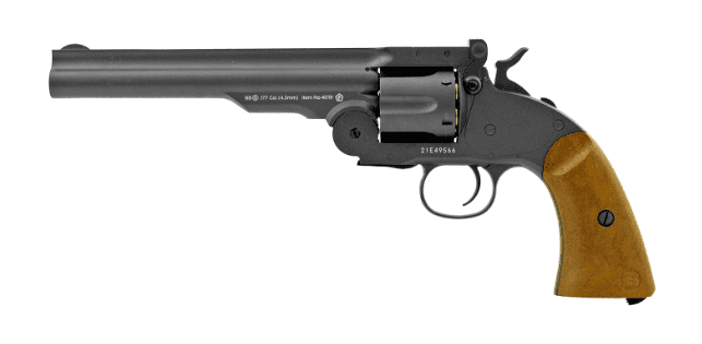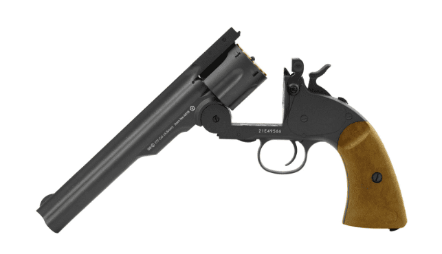 The Schofield is probably what you envision when you think of a Wild West shootout. Shooting with this beautiful piece of frontier history is your chance to unleash your inner ranch hand, outlaw or sheriff depending on your preference (no judgement either way). Perfect on the range or backyard plinking, the Schofield No.3 Vintage Revolver from Barra Airguns is the right pistol at the right price.